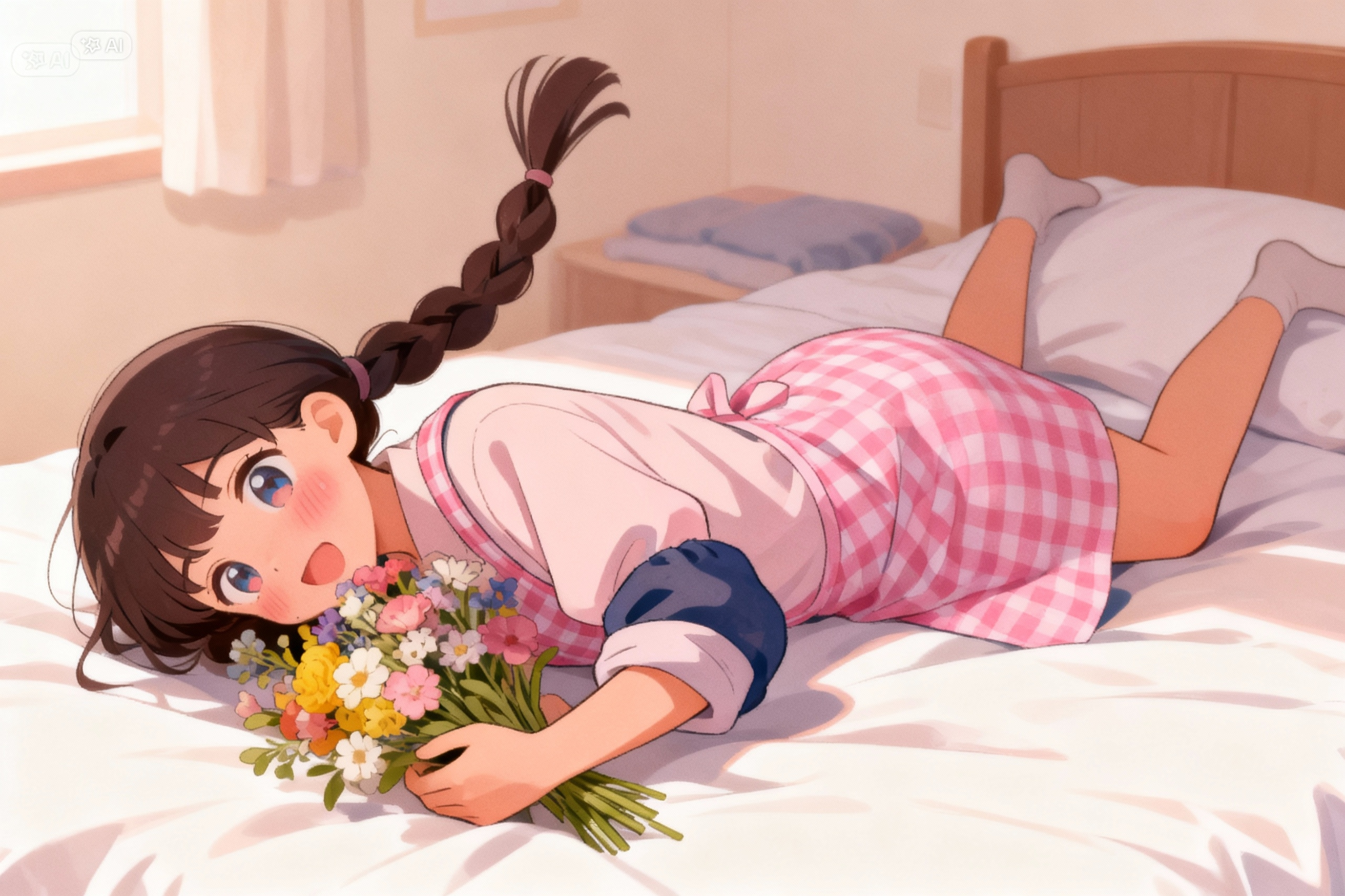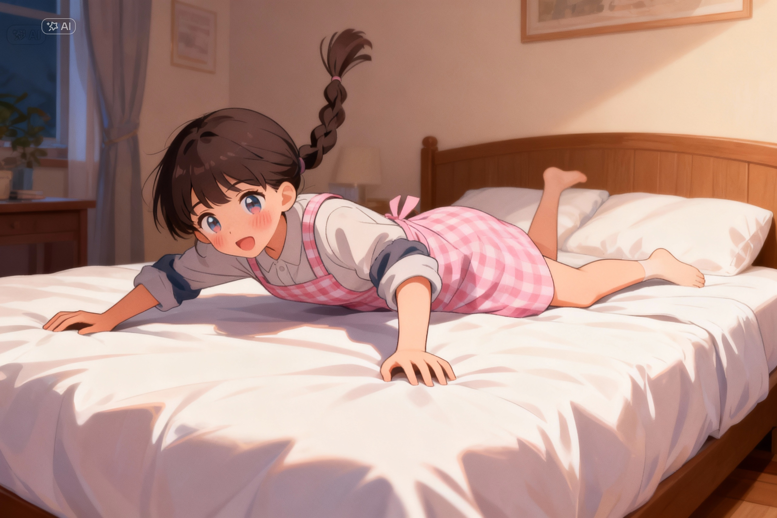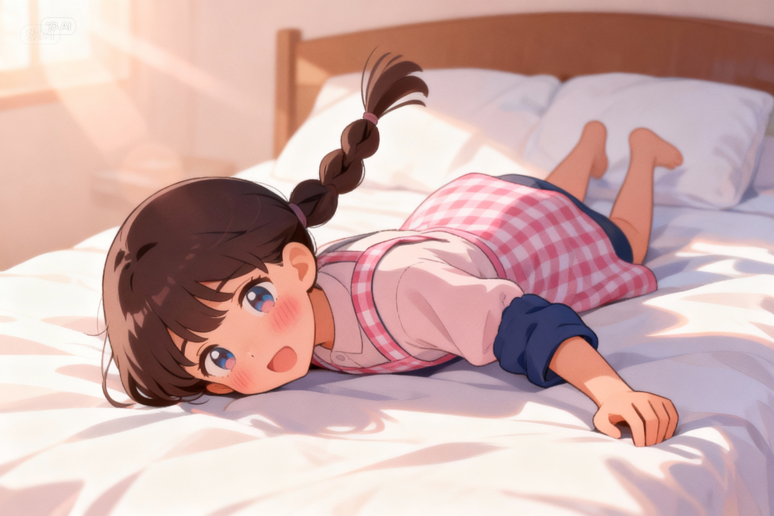 男性向けのかわいい絵、リアル系な女の子の2次元イラスト画像素朴な田園の風景の中で、三つ編みを揺らしながら笑う少女たち。